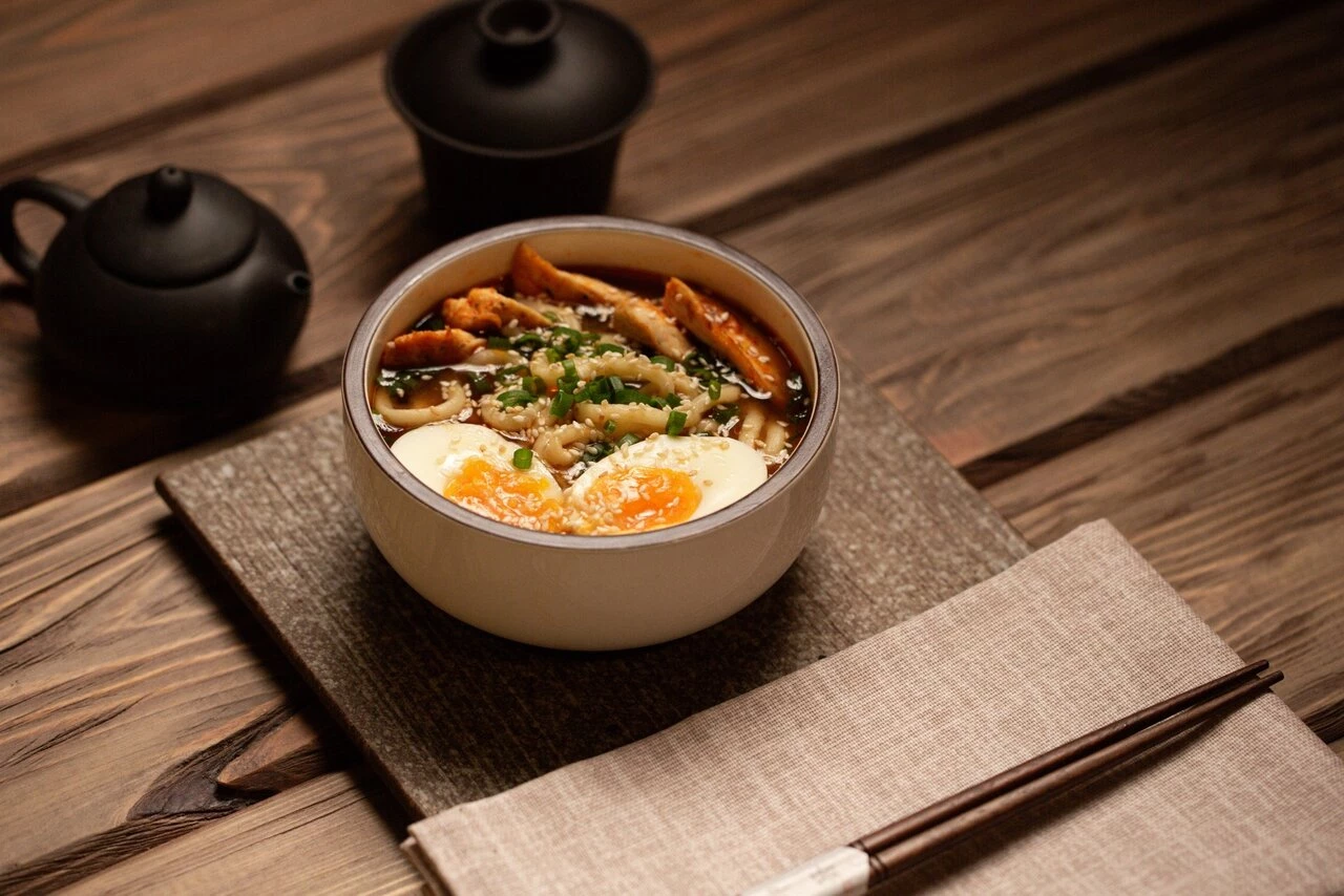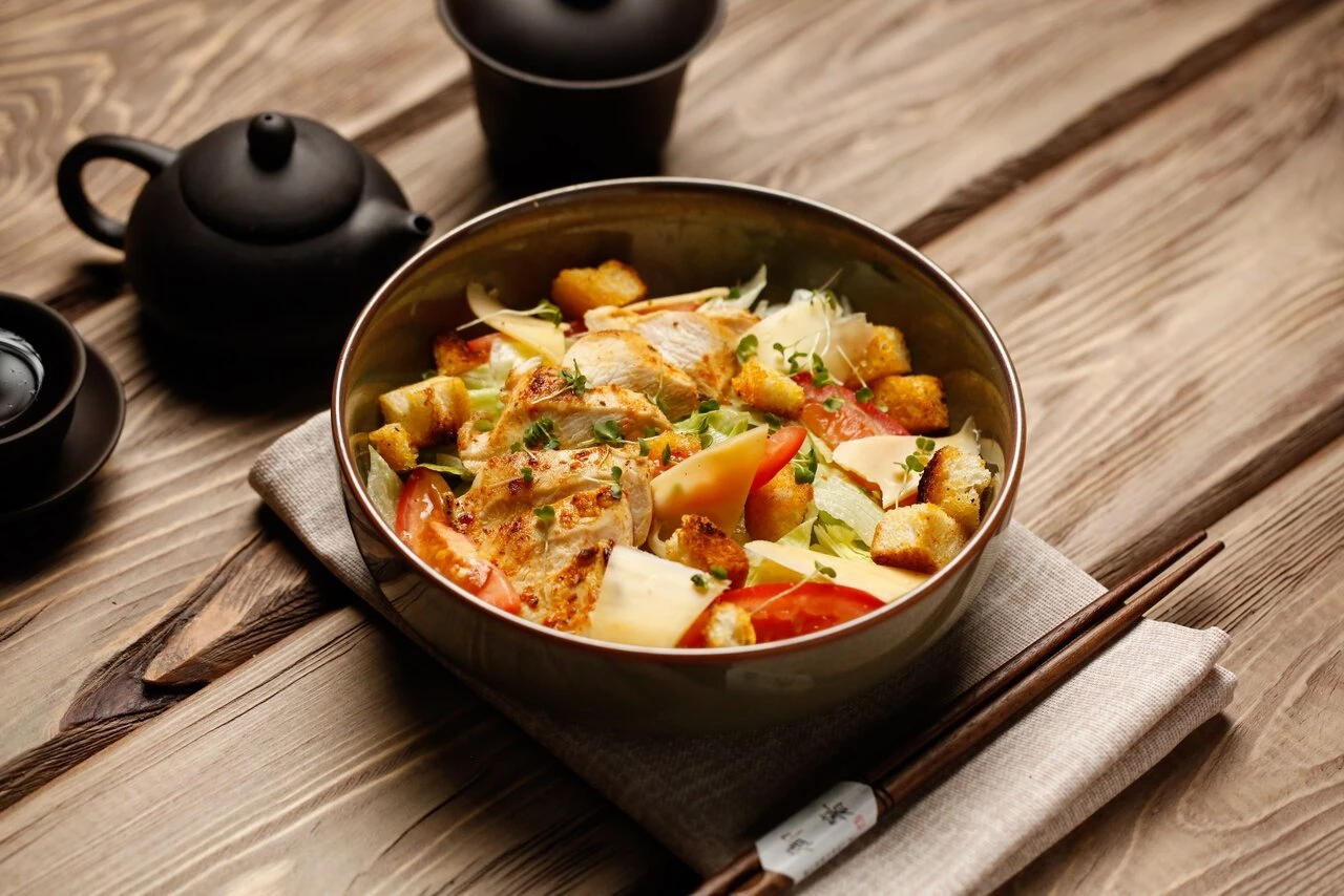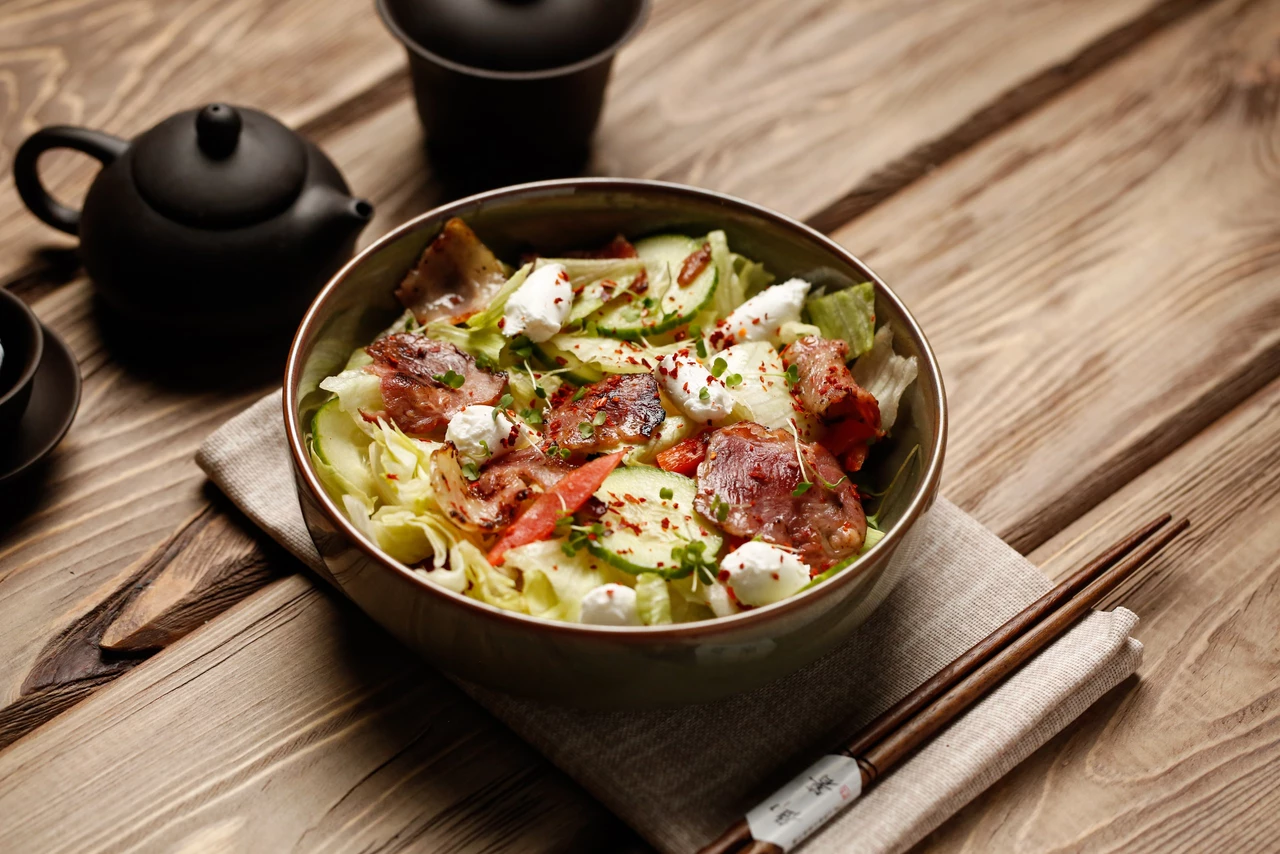 Рамен очень вкусный и салат с беконом и овощами.Очень сытно. Заказывали первый раз, хотя было написано в подарок крылья куриные на первый заказ.